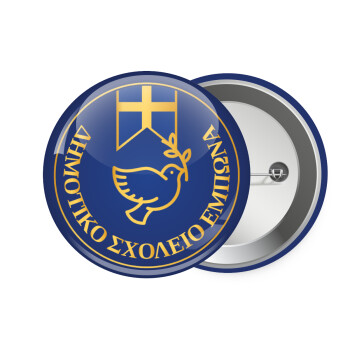 Έμβλημα Σχολικό μπλε με χρυσό, Κονκάρδα παραμάνα 7.5cm