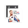 Square badge with a safety pin, in excellent quality of construction and great durability over time. The type of badge with a pin is the most widespread product in this kind.