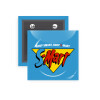 Square badge with a safety pin, in excellent quality of construction and great durability over time. The type of badge with a pin is the most widespread product in this kind.