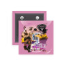 Square badge with a safety pin, in excellent quality of construction and great durability over time. The type of badge with a pin is the most widespread product in this kind.