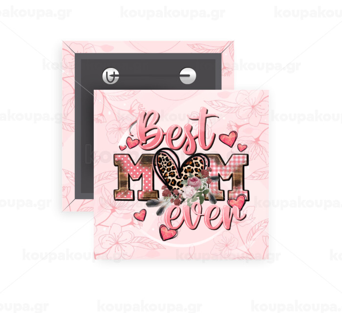 Best mom ever Mother's Day, Κονκάρδα παραμάνα τετράγωνη 5x5cm