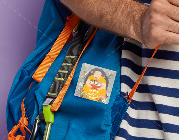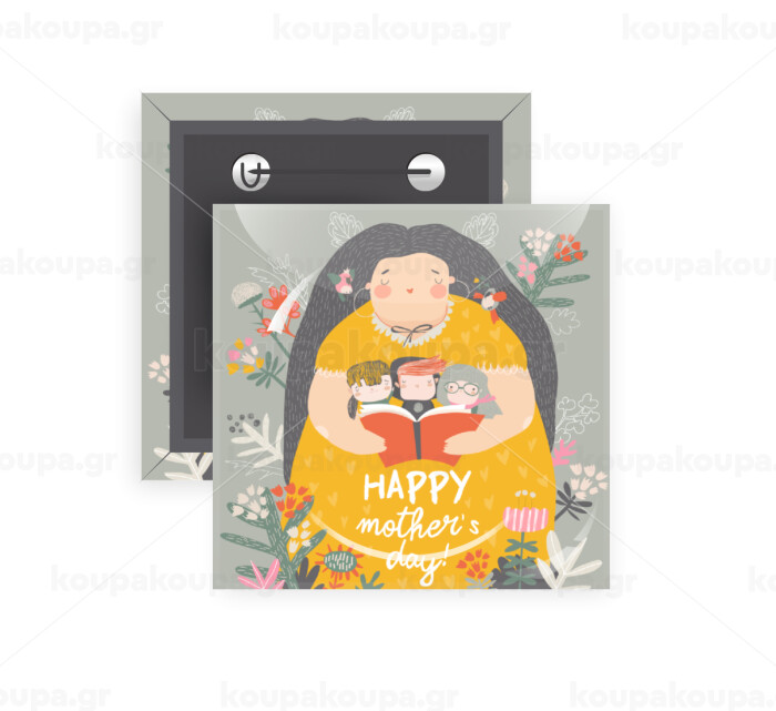 Cute mother reading book, happy mothers day, Κονκάρδα παραμάνα τετράγωνη 5x5cm