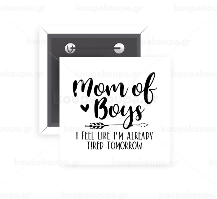 Mom of boys i feel like im already tired tomorrow, Κονκάρδα παραμάνα τετράγωνη 5x5cm