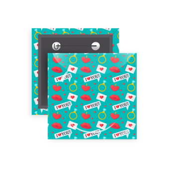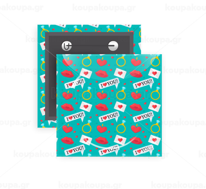 I Love You hearts rings & kiss pattern, Κονκάρδα παραμάνα τετράγωνη 5x5cm