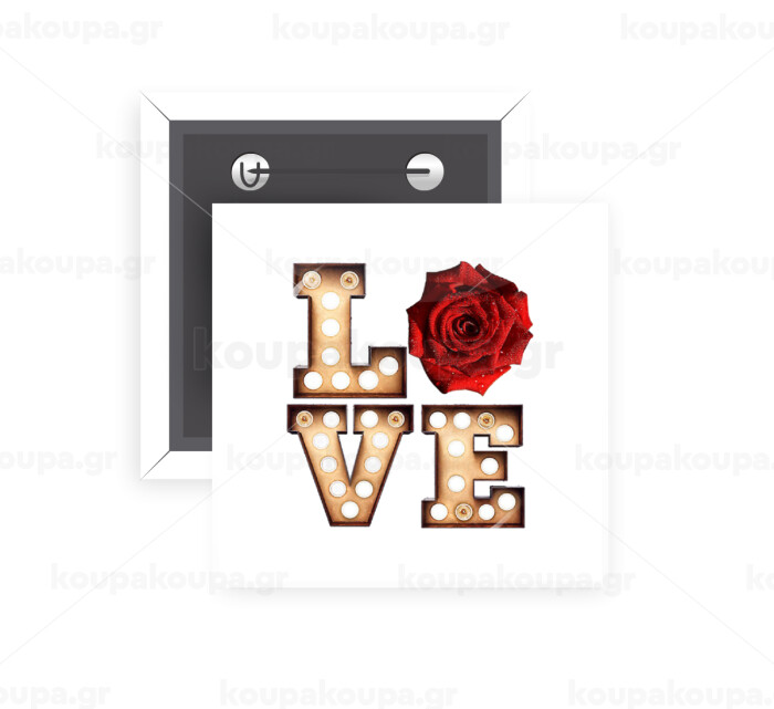 Love lights and roses, Κονκάρδα παραμάνα τετράγωνη 5x5cm