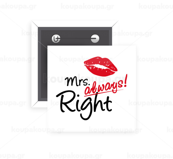 Mrs always right kiss, Κονκάρδα παραμάνα τετράγωνη 5x5cm