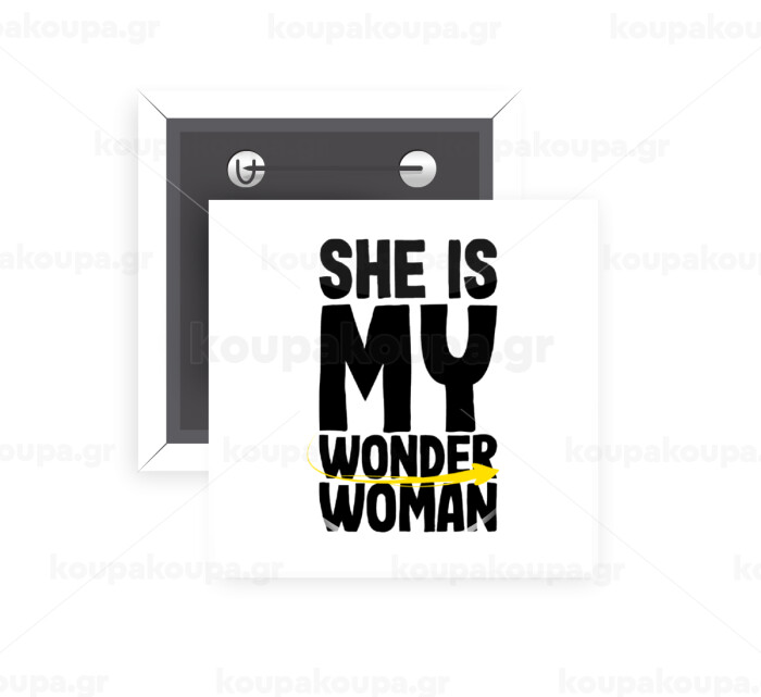She is my wonder woman, Κονκάρδα παραμάνα τετράγωνη 5x5cm