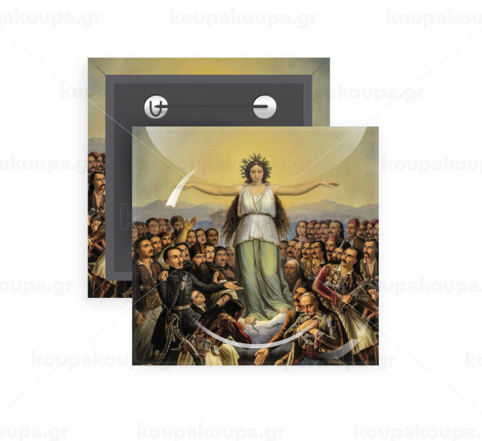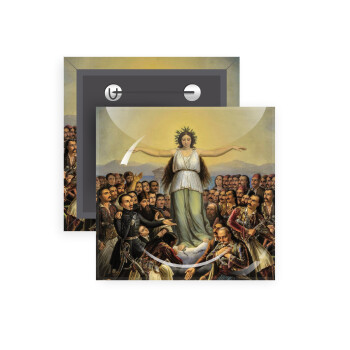 Square badge with a safety pin, in excellent quality of construction and great durability over time. The type of badge with a pin is the most widespread product in this kind.
