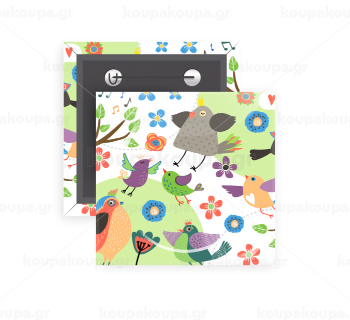 Square badge with a safety pin, in excellent quality of construction and great durability over time. The type of badge with a pin is the most widespread product in this kind.