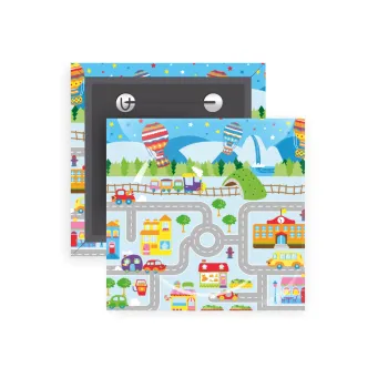 Square badge with a safety pin, in excellent quality of construction and great durability over time. The type of badge with a pin is the most widespread product in this kind.