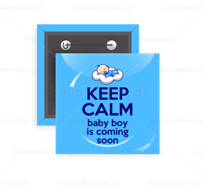 KEEP CALM baby boy is coming soon!!!, Κονκάρδα παραμάνα τετράγωνη 5x5cm