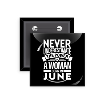 Never Underestimate the poer of a Woman born in..., Κονκάρδα παραμάνα τετράγωνη 5x5cm