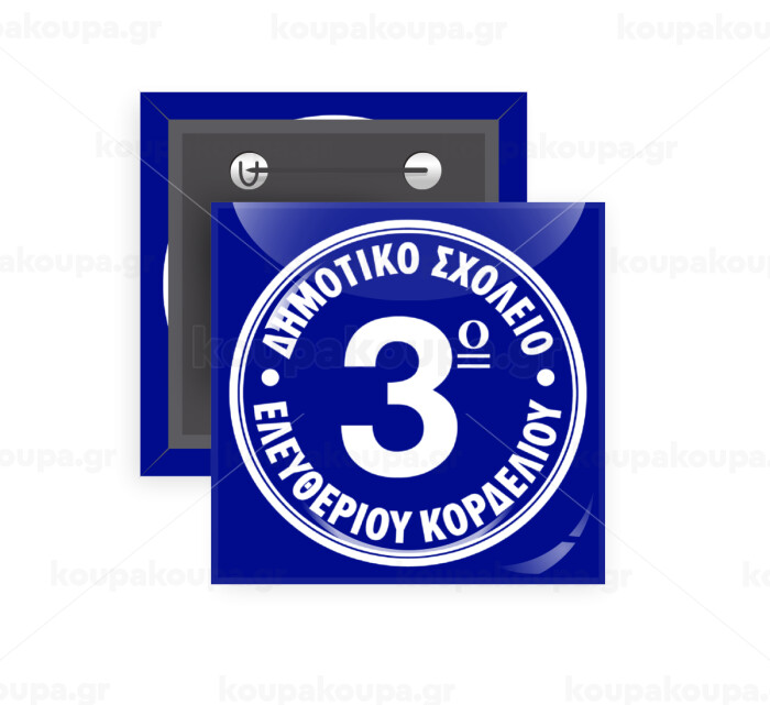 Έμβλημα Σχολικό μπλε, Κονκάρδα παραμάνα τετράγωνη 5x5cm