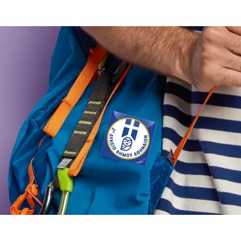 Square badge with a safety pin, in excellent quality of construction and great durability over time. The type of badge with a pin is the most widespread product in this kind.