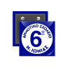 Square badge with a safety pin, in excellent quality of construction and great durability over time. The type of badge with a pin is the most widespread product in this kind.