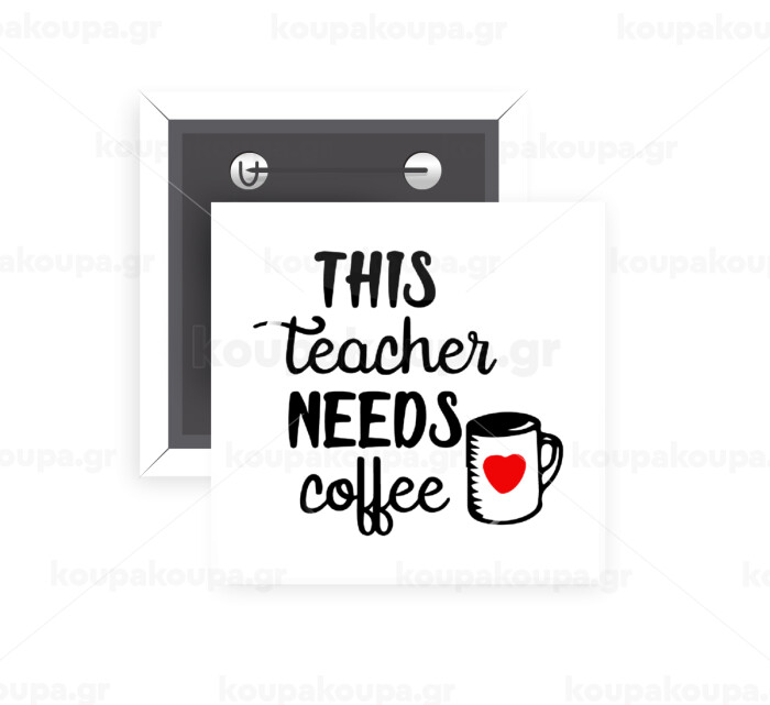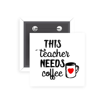 Τhis teacher needs coffee, Κονκάρδα παραμάνα τετράγωνη 5x5cm