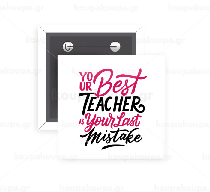 Typography quotes your best teacher is your last mistake, Κονκάρδα παραμάνα τετράγωνη 5x5cm