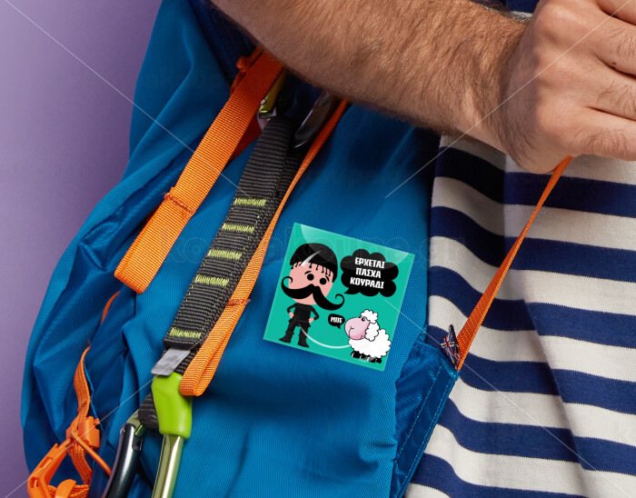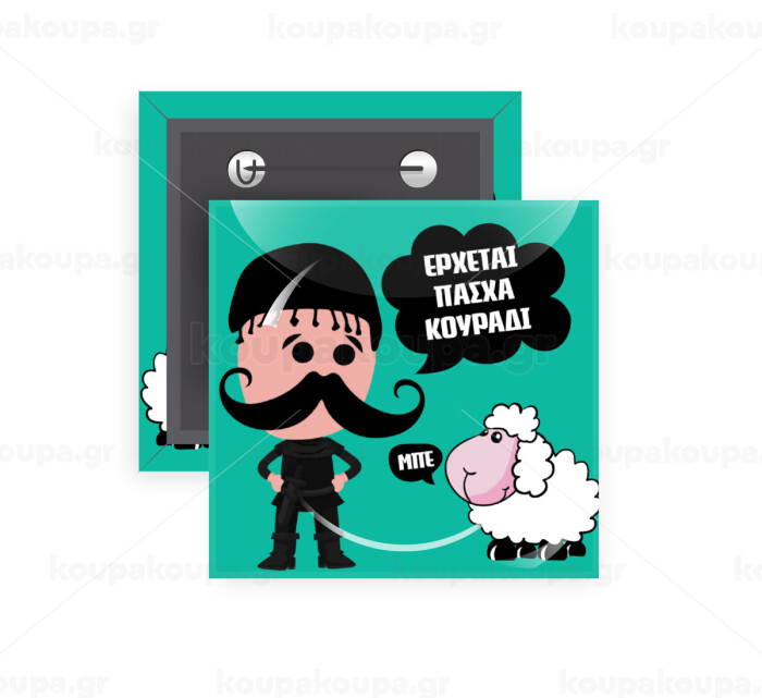 Κρητικός "Έρχεται Πάσχα κουράδι", Κονκάρδα παραμάνα τετράγωνη 5x5cm