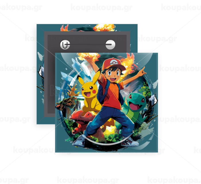 Ash Ketchum & Pikachu, Κονκάρδα παραμάνα τετράγωνη 5x5cm