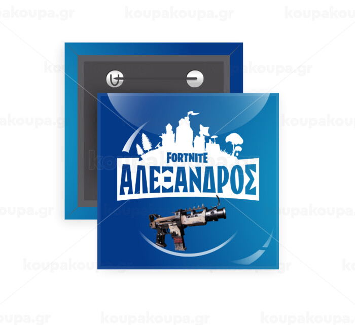 Fortnite with gun με το όνομα σου, Κονκάρδα παραμάνα τετράγωνη 5x5cm