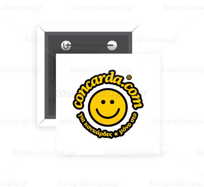 Square badge with a safety pin, in excellent quality of construction and great durability over time. The type of badge with a pin is the most widespread product in this kind.