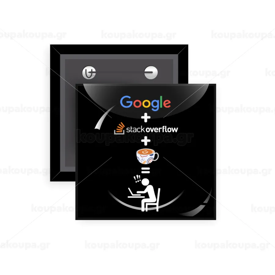 Google + Stack overflow + Coffee, Κονκάρδα παραμάνα τετράγωνη 5x5cm