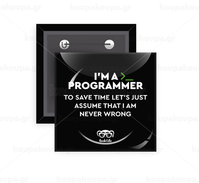 I’m a programmer Save time, Κονκάρδα παραμάνα τετράγωνη 5x5cm