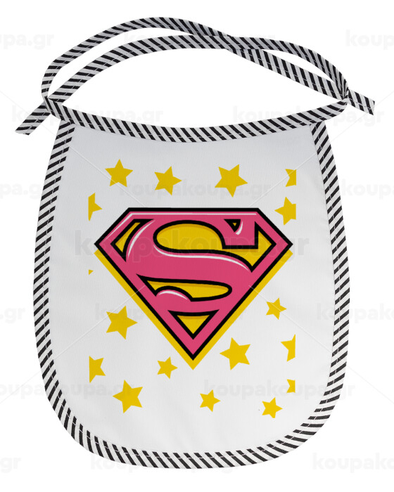 Superman Pink, Σαλιάρα μωρού αλέκιαστη με κορδόνι Μαύρη