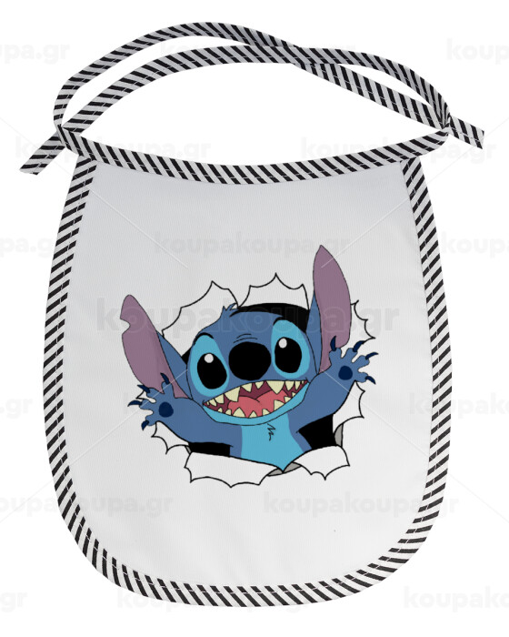 Stitch hello!!!, Σαλιάρα μωρού αλέκιαστη με κορδόνι Μαύρη