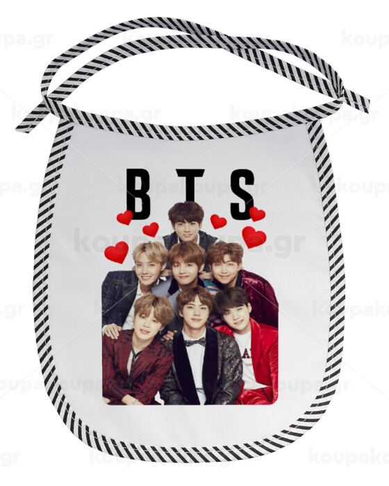BTS hearts, Σαλιάρα μωρού αλέκιαστη με κορδόνι Μαύρη