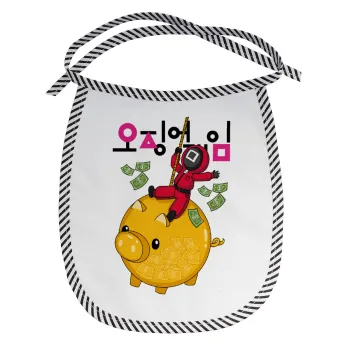 Bib with cord with impressive designs that will make the baby look forward to mealtime.Comfortable and large cords for the neck (100% cotton).Stain-resistant, waterproof and lightweight fabric for a very good feel and protection of the baby.