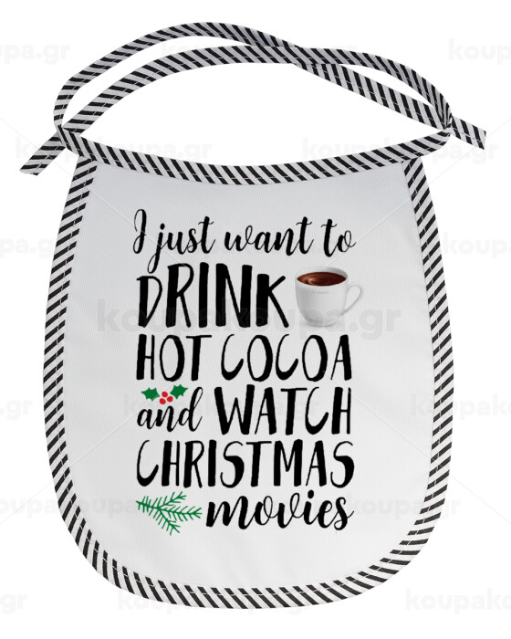 I just want to drink hot cocoa and watch christmas movies, Σαλιάρα μωρού αλέκιαστη με κορδόνι Μαύρη
