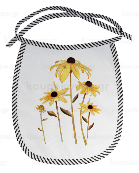 Daisies flower, Σαλιάρα μωρού αλέκιαστη με κορδόνι Μαύρη