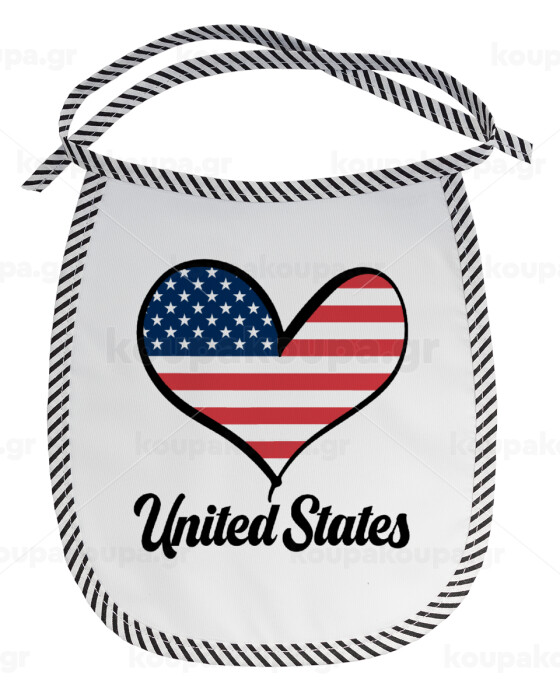 USA flag, Σαλιάρα μωρού αλέκιαστη με κορδόνι Μαύρη