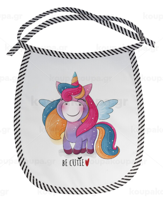Pink unicorn, Σαλιάρα μωρού αλέκιαστη με κορδόνι Μαύρη