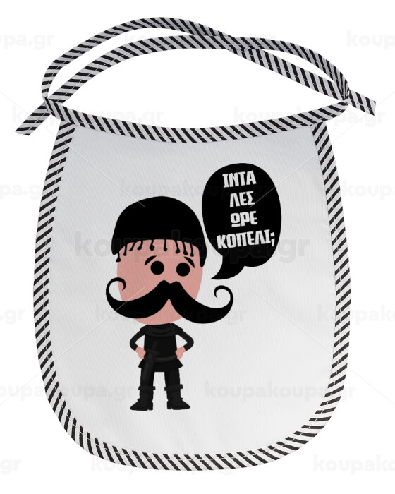 Κρητικός "Ίντα λες ωρέ κοπέλι", Σαλιάρα μωρού αλέκιαστη με κορδόνι Μαύρη