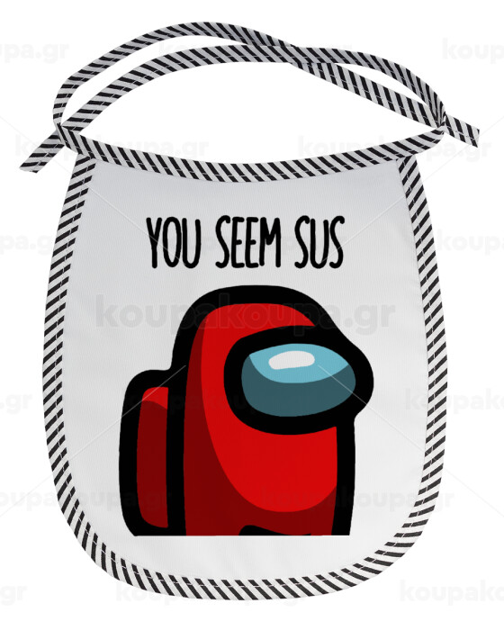 Among US, you seem sus, Σαλιάρα μωρού αλέκιαστη με κορδόνι Μαύρη