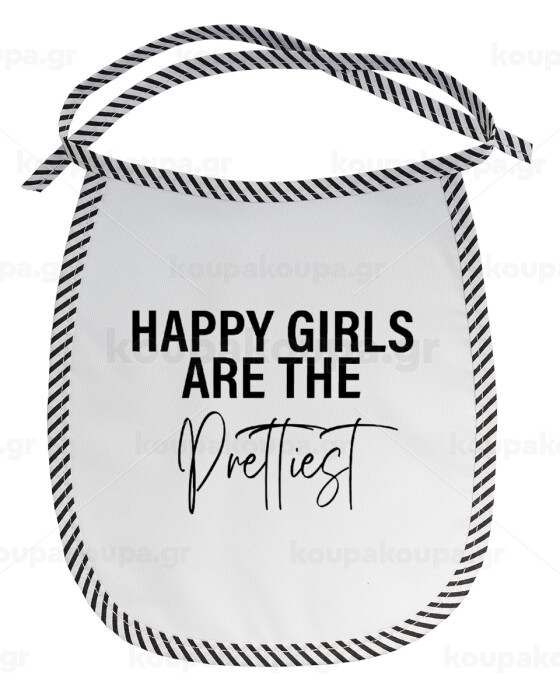 Happy girls are the prettiest, Σαλιάρα μωρού αλέκιαστη με κορδόνι Μαύρη