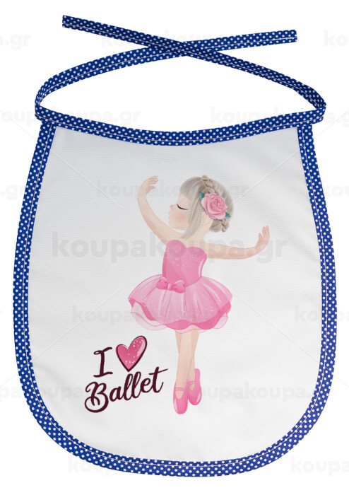 I Love Ballet, Σαλιάρα μωρού αλέκιαστη με κορδόνι Μπλε