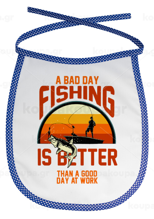 A bad day FISHING is better than a good day at work, Σαλιάρα μωρού αλέκιαστη με κορδόνι Μπλε