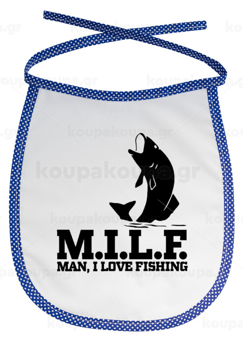 M.I.L.F. Mam i love fishing, Σαλιάρα μωρού αλέκιαστη με κορδόνι Μπλε