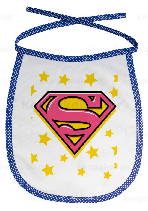 Superman Pink, Σαλιάρα μωρού αλέκιαστη με κορδόνι Μπλε