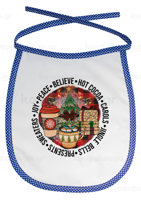Joy, Peace, Believe, Hot Cocoa, Carols, Σαλιάρα μωρού αλέκιαστη με κορδόνι Μπλε