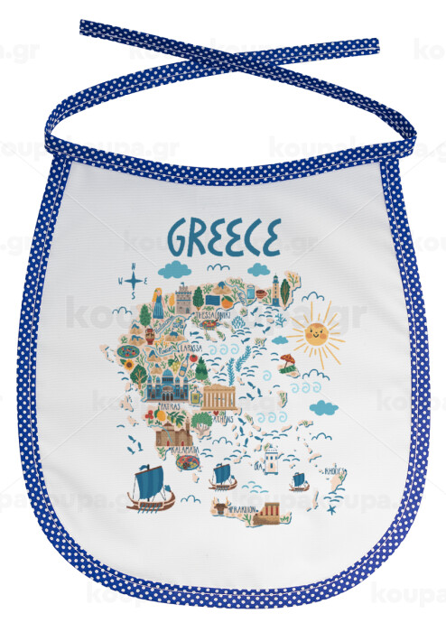 Greek map, Σαλιάρα μωρού αλέκιαστη με κορδόνι Μπλε
