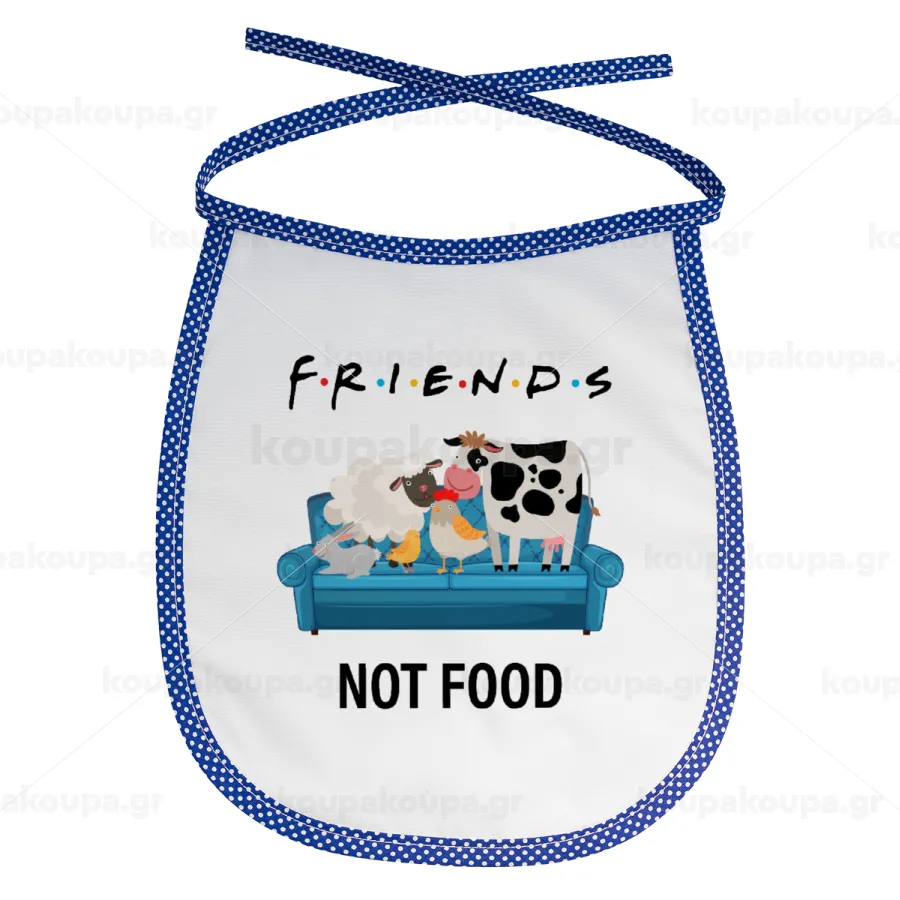 friends, not food, Σαλιάρα μωρού αλέκιαστη με κορδόνι Μπλε