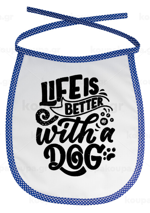 Life is better with a DOG, Σαλιάρα μωρού αλέκιαστη με κορδόνι Μπλε