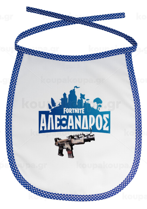 Fortnite with gun με το όνομα σου, Σαλιάρα μωρού αλέκιαστη με κορδόνι Μπλε