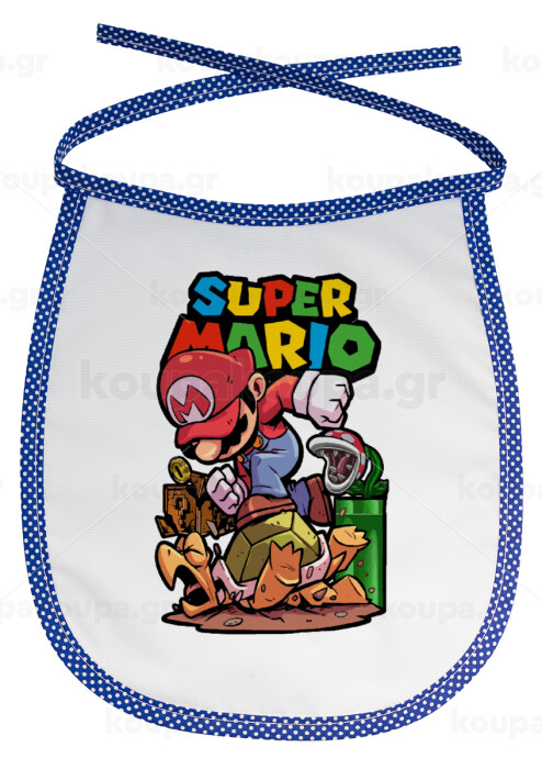 Super mario Jump, Σαλιάρα μωρού αλέκιαστη με κορδόνι Μπλε