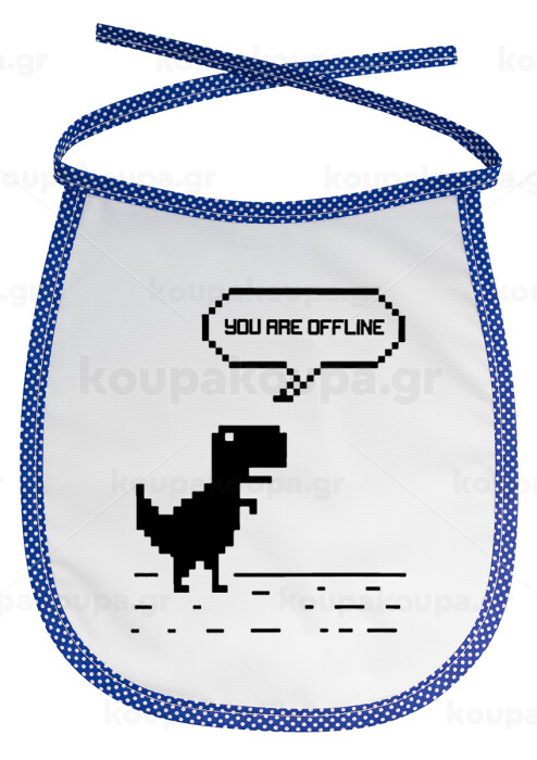 You are offline dinosaur, Σαλιάρα μωρού αλέκιαστη με κορδόνι Μπλε