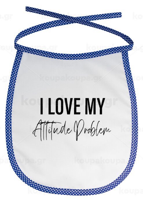 I love my attitude problem, Σαλιάρα μωρού αλέκιαστη με κορδόνι Μπλε